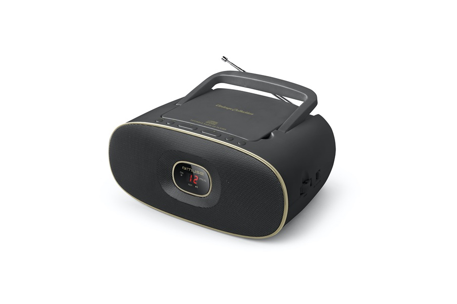 MUSE MD-202 VT – Fekete-arany vintage CD-s rádió Fő tulajdonságok: – Vörös LED kijelző – Teleszkópos fém FM rádió antenna – CD, CD-R, CD-RW kompatibilis – Lehajtható hordozó fül – Könnyű kezelhetőség Funkciók: – Analóg FM és középhullámos rádióvétel – Programozható CD lejátszás – Ismétlés funkció CD lejátszás esetén – AUX jack bemenet – külső lejátszó kihangosításához Tápellátás: Hálózati áram, vagy 6 × 1,5V “C“ elem (nem tartozék) Méret: 112 × 179 × 242 mm Tömeg: 1,3 kg